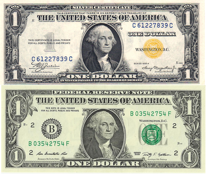 Can you spot the difference? The first one was issued by the U.S. Treasury and the second one by the Federal Reserve (the promised redemption for silver has long since been suspended). The Fed is said to “monetize the debt” when it replaces the top bill with the bottom bill. Is it any wonder why the BoJ cannot create inflation by swapping zero-interest BoJ reserves for zero-interest JGBs? (In case you’re interested, see my piece here.)